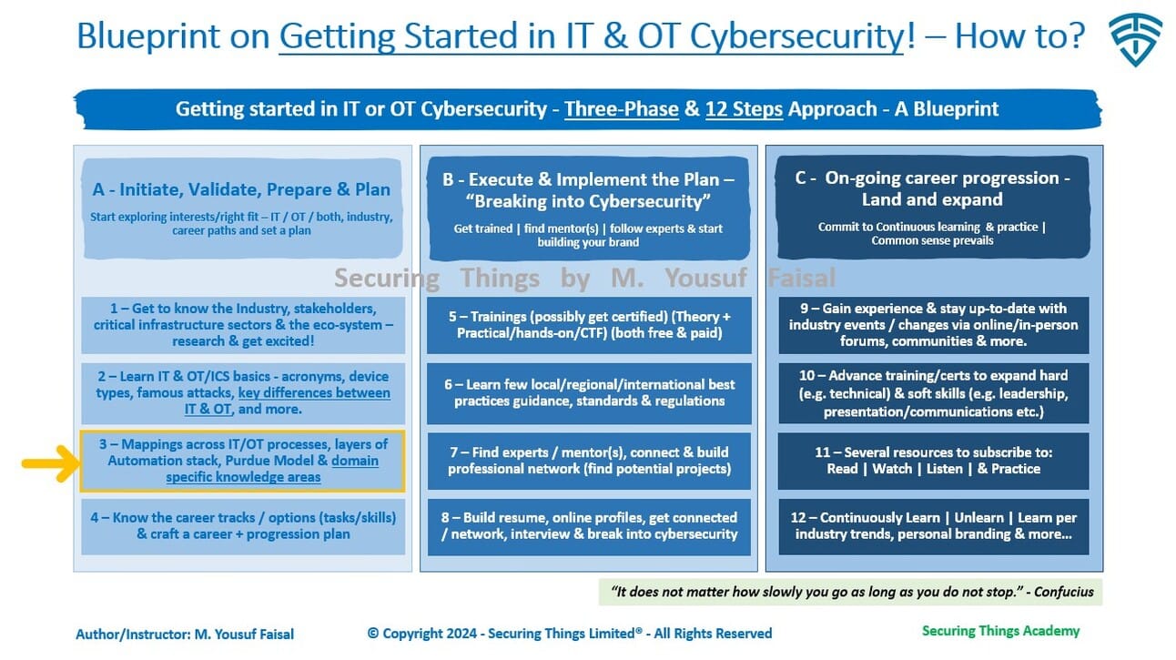 ✅[ST # 22] My 3 phase & 12 steps blueprint for 4 persona types: (a) recent graduate or learner, (b) an IT security professional, (c) an automation professional, (d) an experienced professional from a non-IT/Security/Automation field - interested in getting started in IT/OT security. [Securing Things by M. Yousuf Faisal]